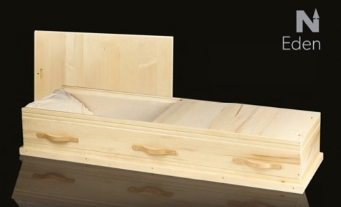 • 100% Ontario solid poplar • Peg and dowel assembly (no metal, steel or plastics) • Threaded dowel lock • Natural finish and sealer • Natural cotton interior • Northern Casket # 100-2